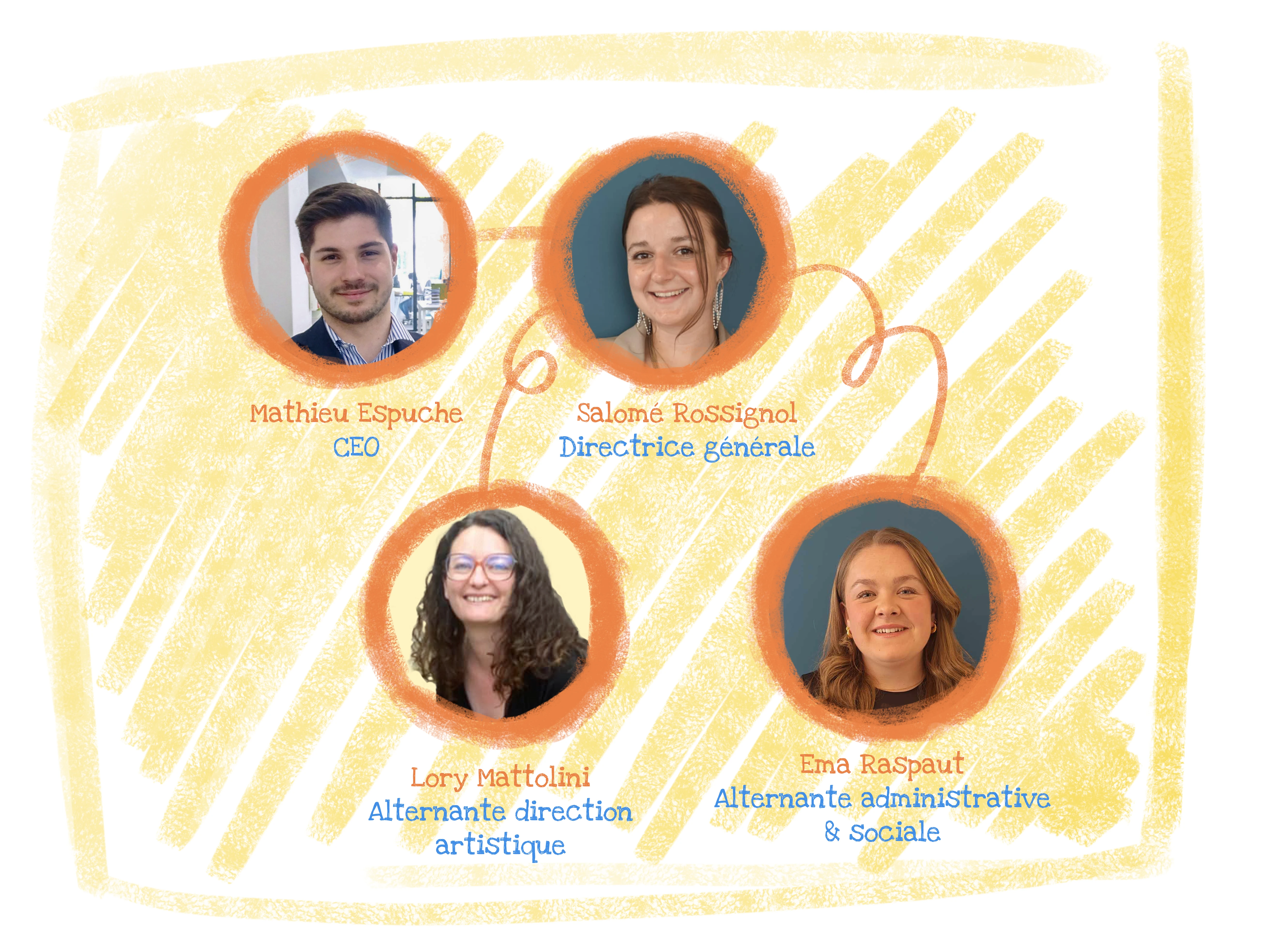 L’équipe de Maimmo Conseil est répartie entre le bureau et le terrain, chacun avec un rôle bien précis. Au bureau, on retrouve Mathieu, fondateur et CEO, toujours en mouvement pour faire grandir l’entreprise. À ses côtés, Salomé, d’abord directrice financière et administrative, puis directrice générale. Ema, alternante en gestion administrative et sociale, veille au bon fonctionnement quotidien, et moi-même, alternante en Direction Artistique, je m’occupe de toute la partie communication et image de marque.